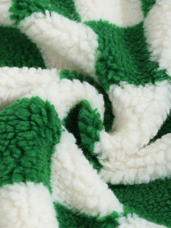 Men's Colorblock Checkerboard Plaid Button Fly Fluffy Fleece Jacket