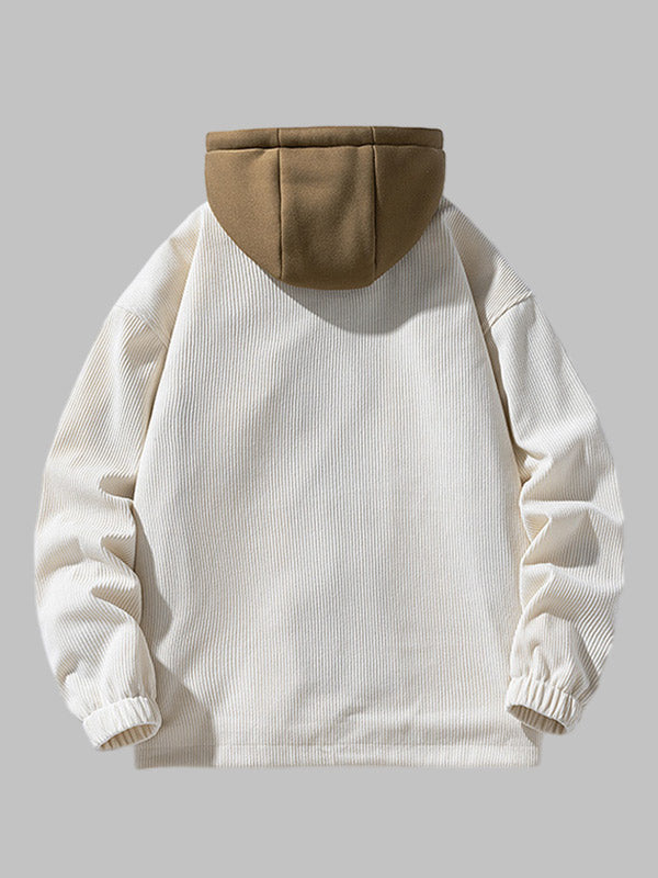 Men's Corduroy Fleece-lined Fake Two-Pocket Hooded Jacket