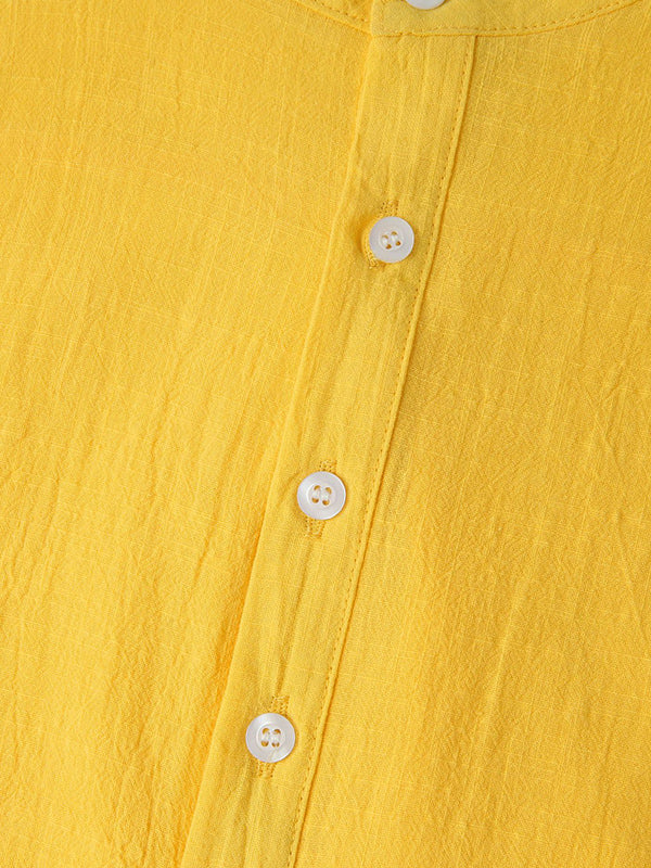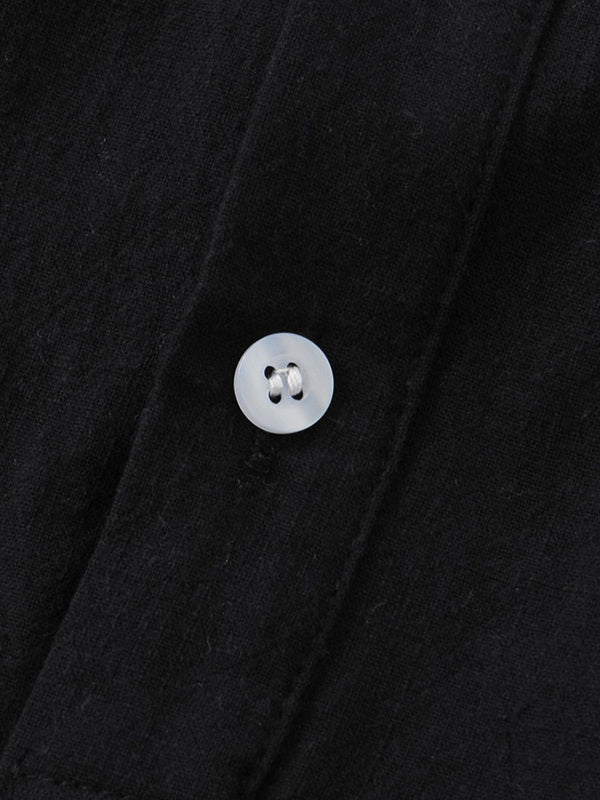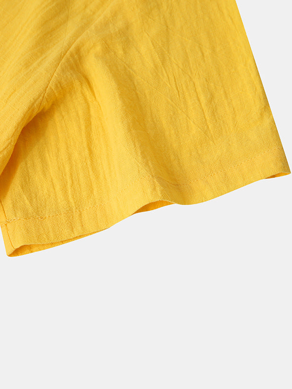 Men's Cotton Linen Textured Half Placket Short Sleeve Shirt