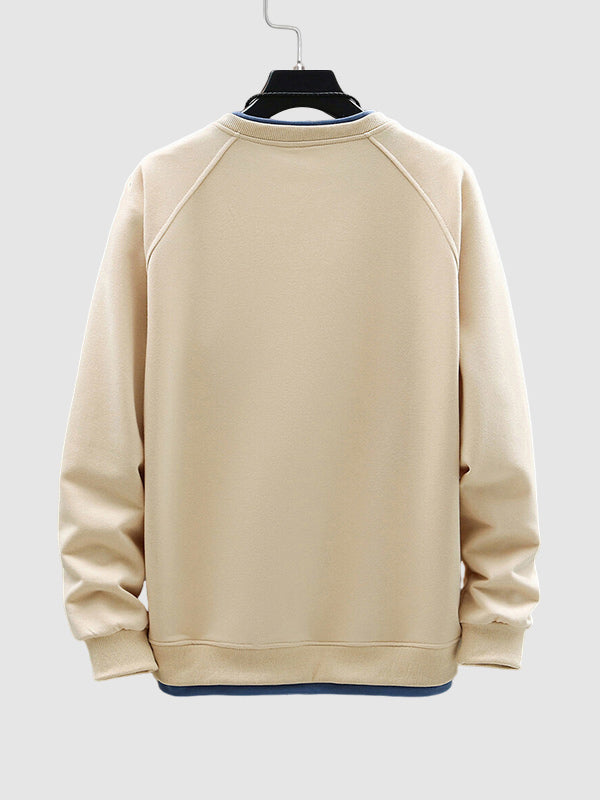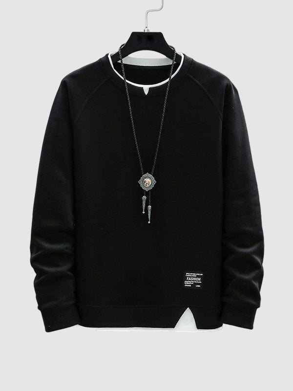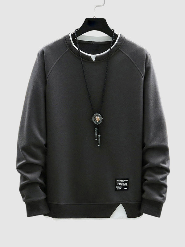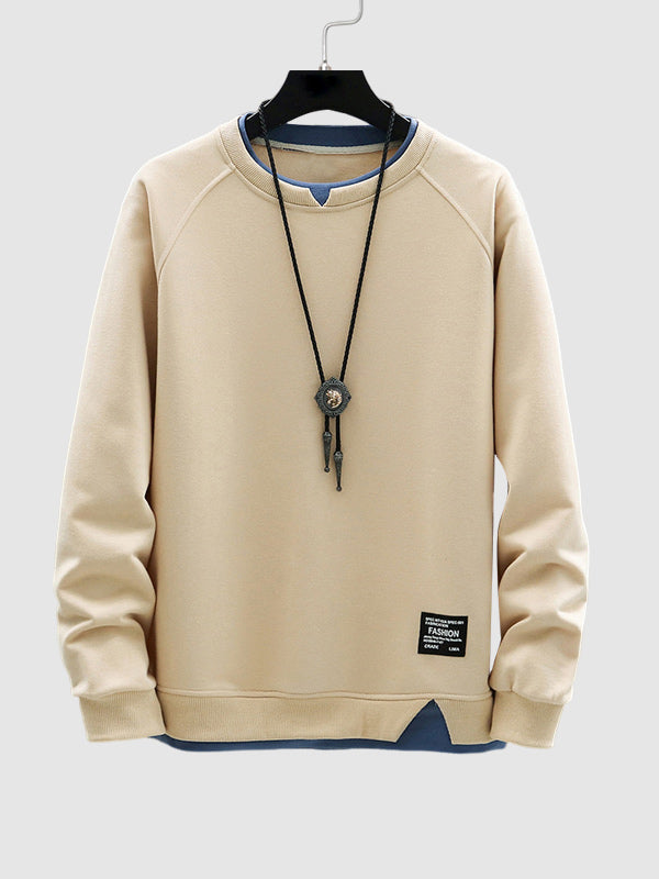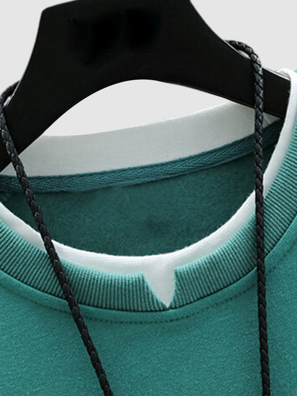 Men's fake two piece stacking crew neck sweatshirt