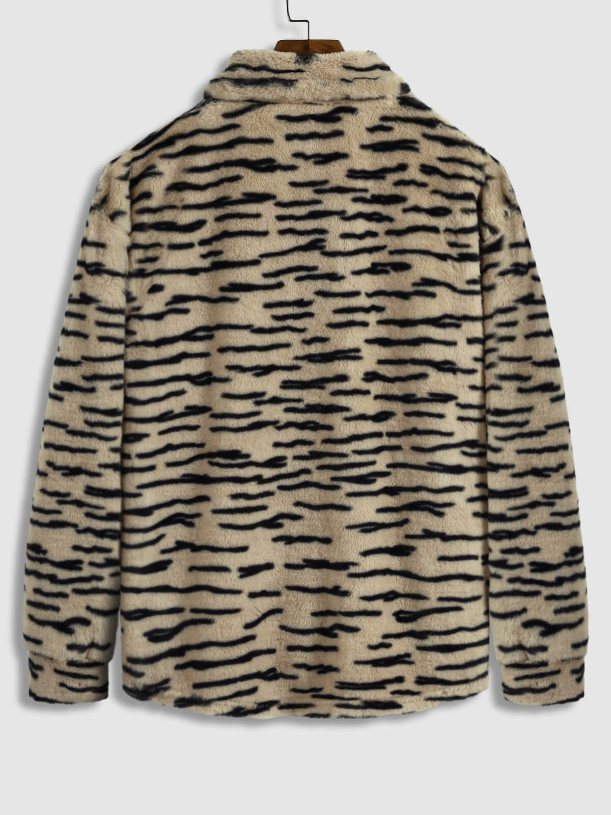 Men's Faux Fur Irregular Tiger Pattern Casual Button-up Jacket