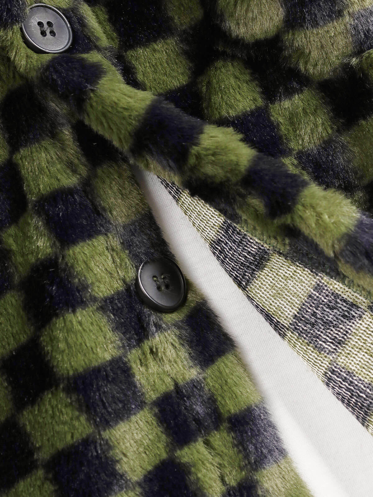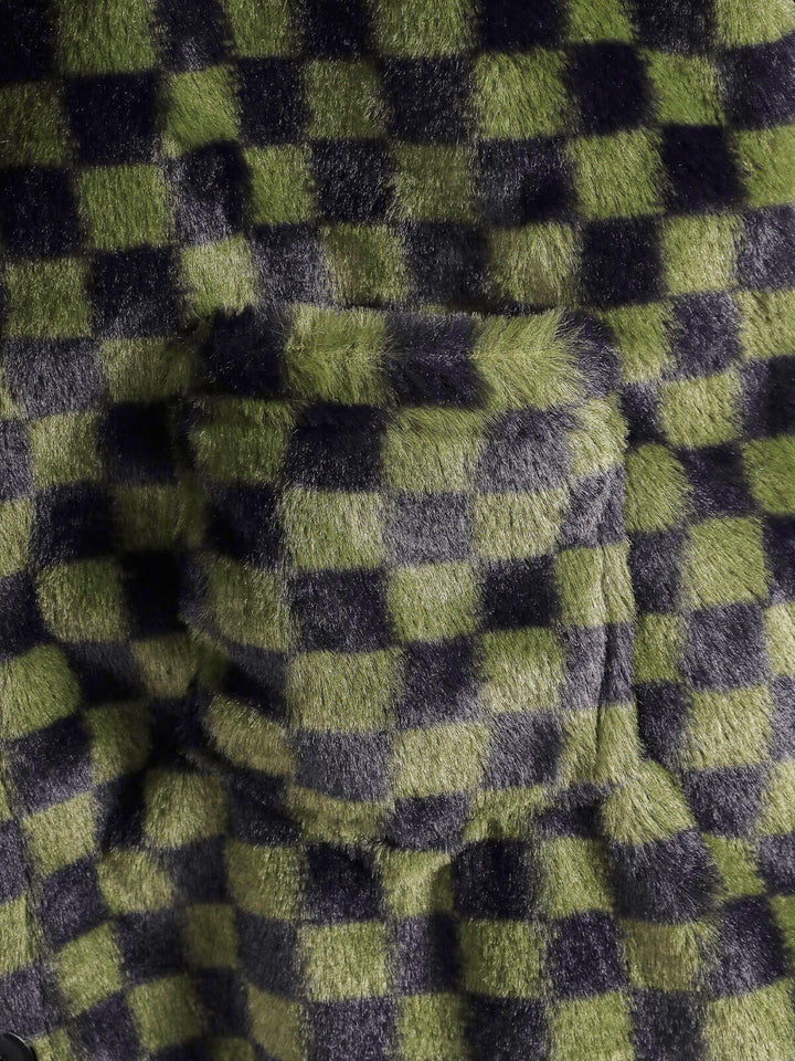 Men's Faux Rabbit Fur Plaid Button Lapel Casual Jacket
