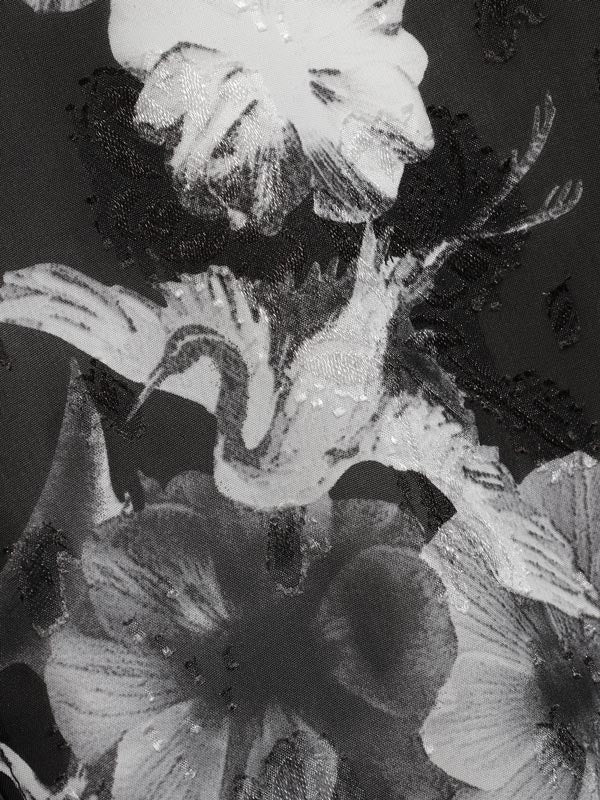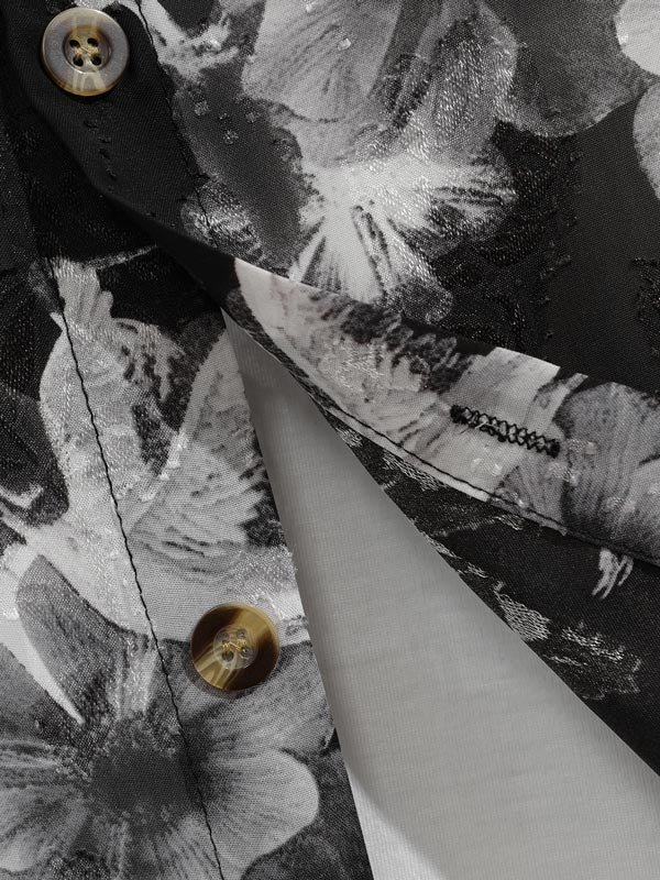 Men's Floral Crane Print Sheer Casual Short Sleeve Shirt