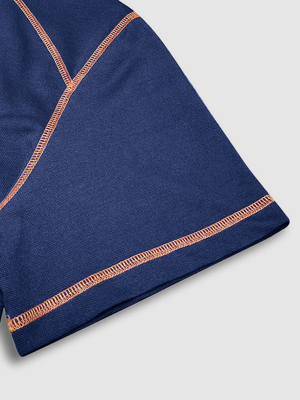 Men's half-button color-blocking casual lapel short-sleeved polo