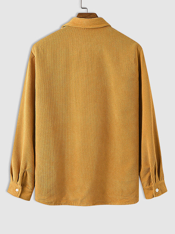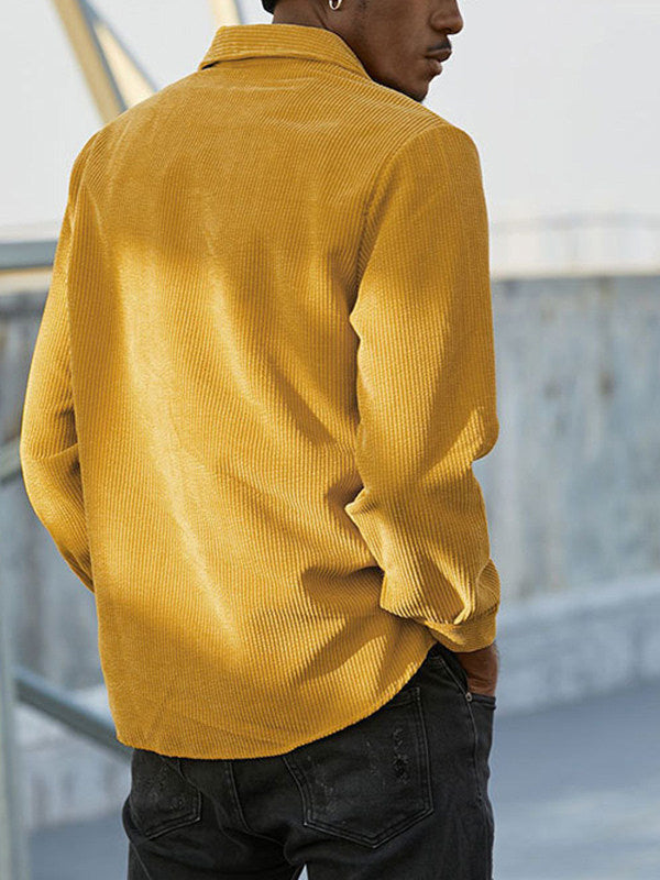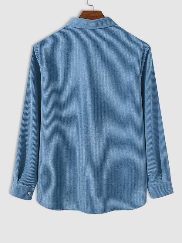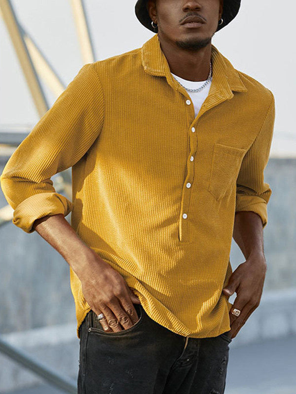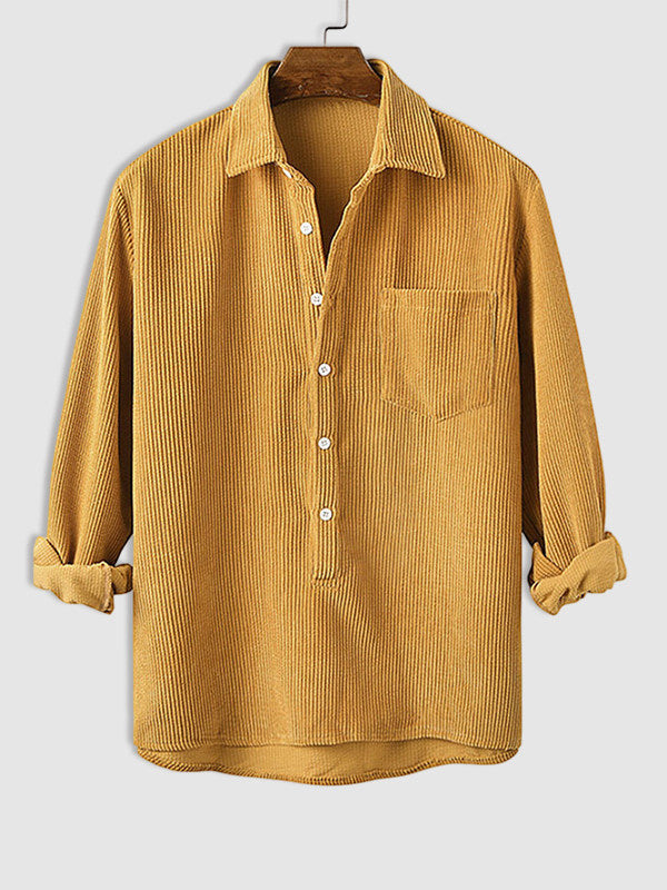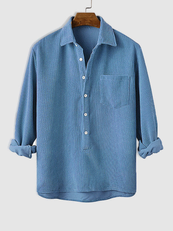 Men's Half Button Corduroy Long Sleeve Shirt-Light Blue