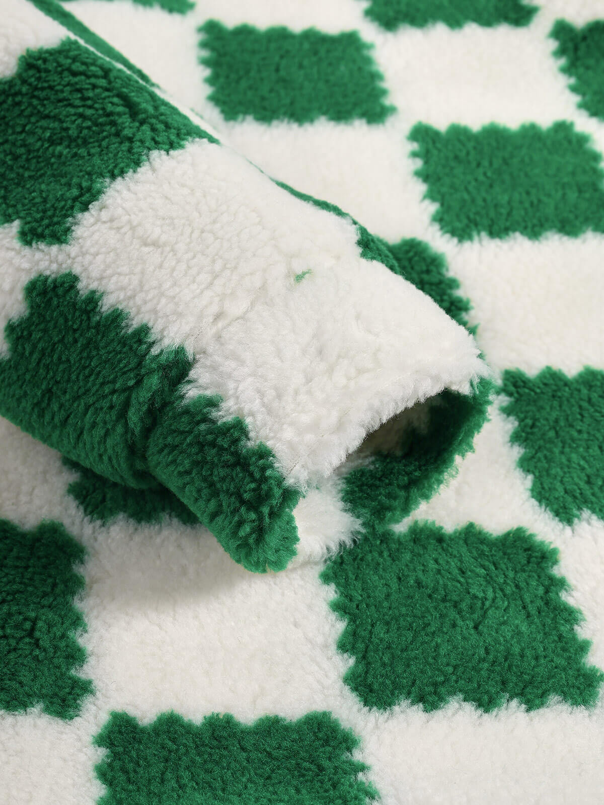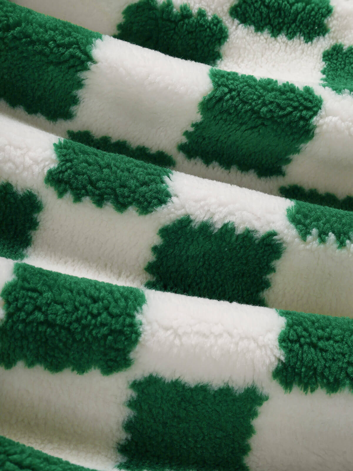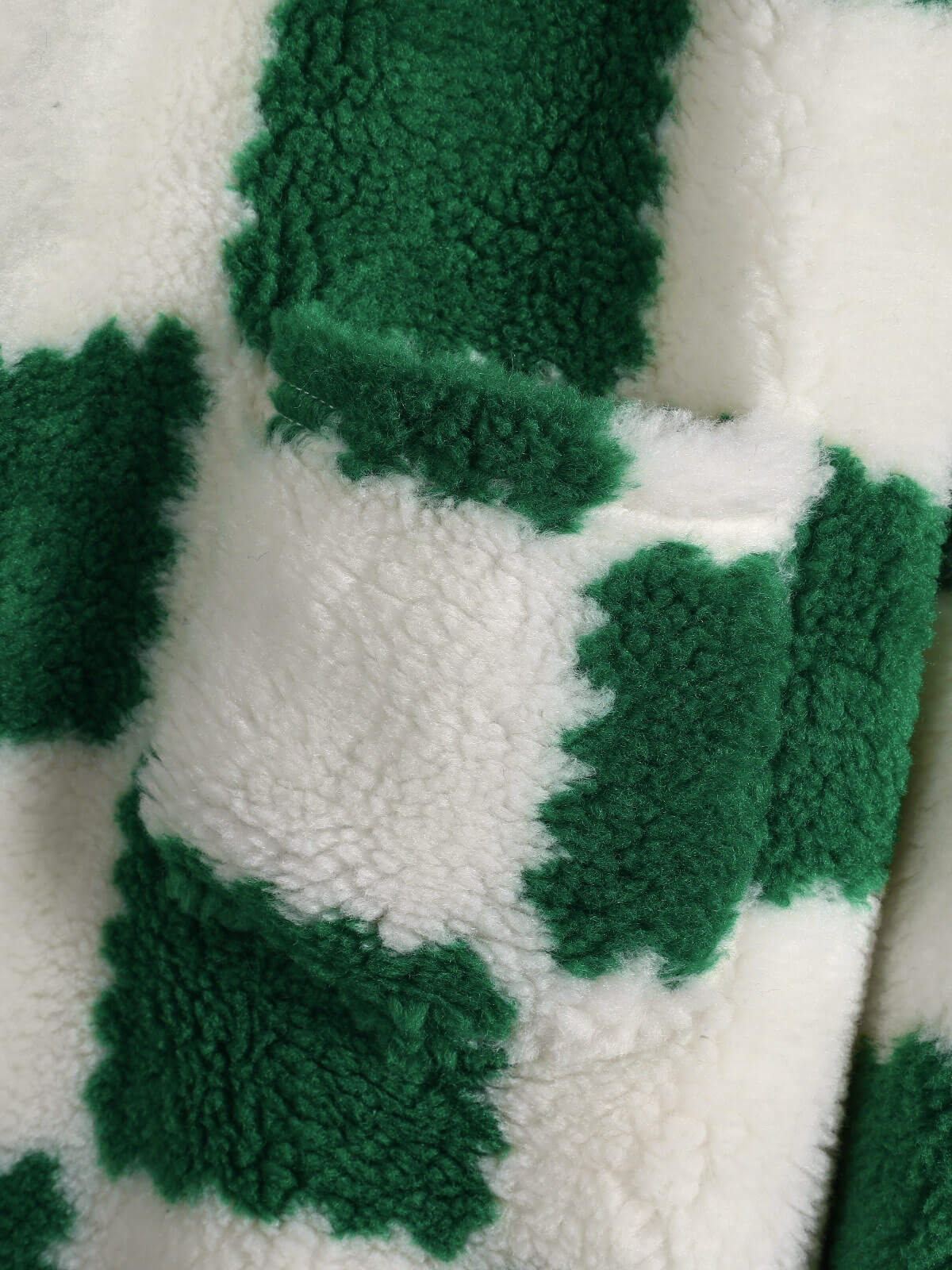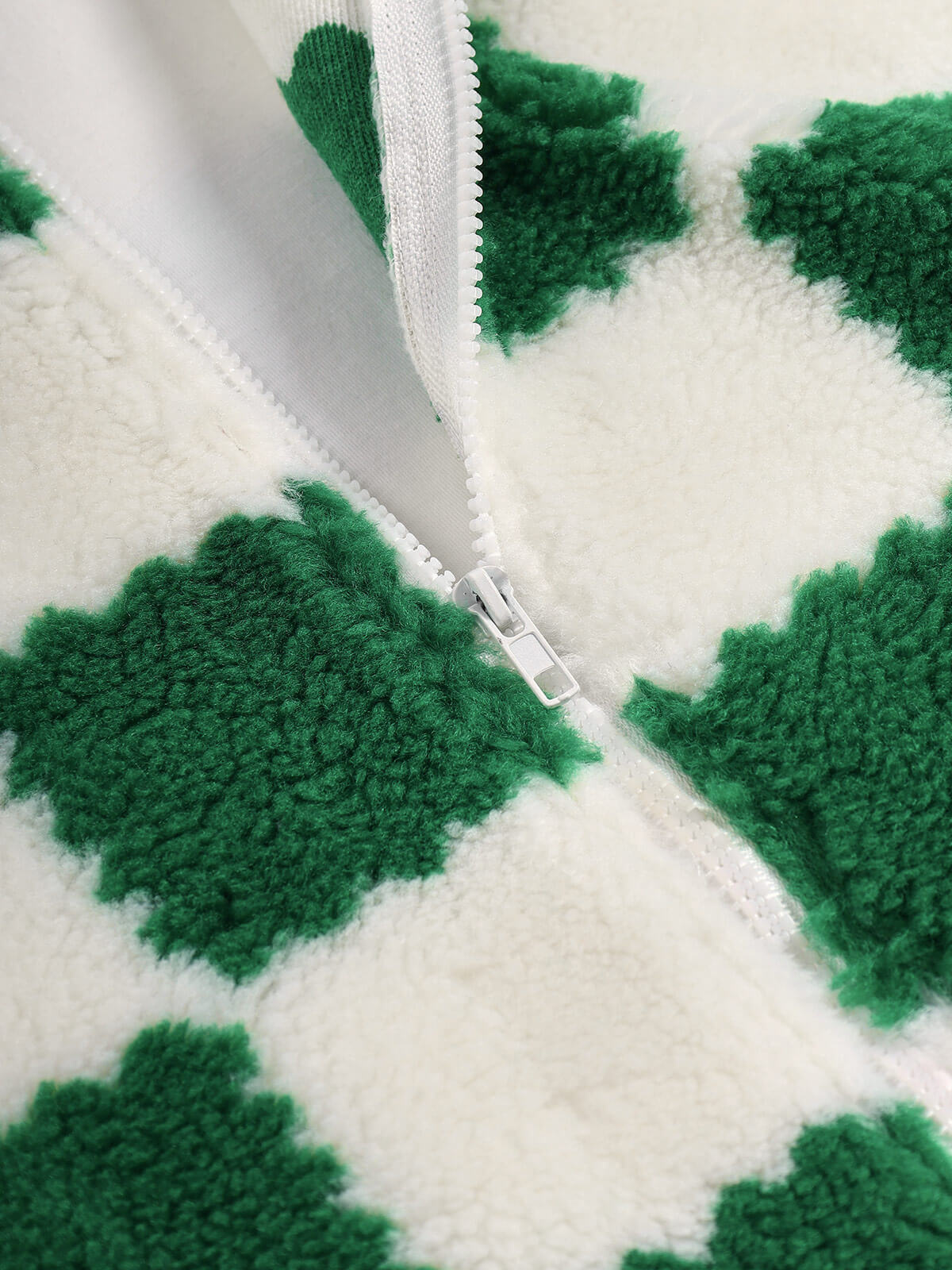 Men's Large Wave Plaid Faux Fur Single Pocket Zip-up Jacket
