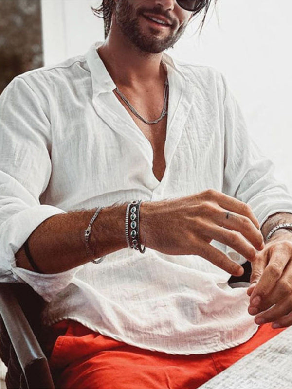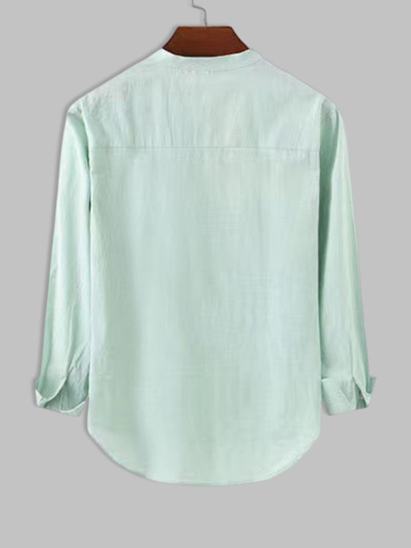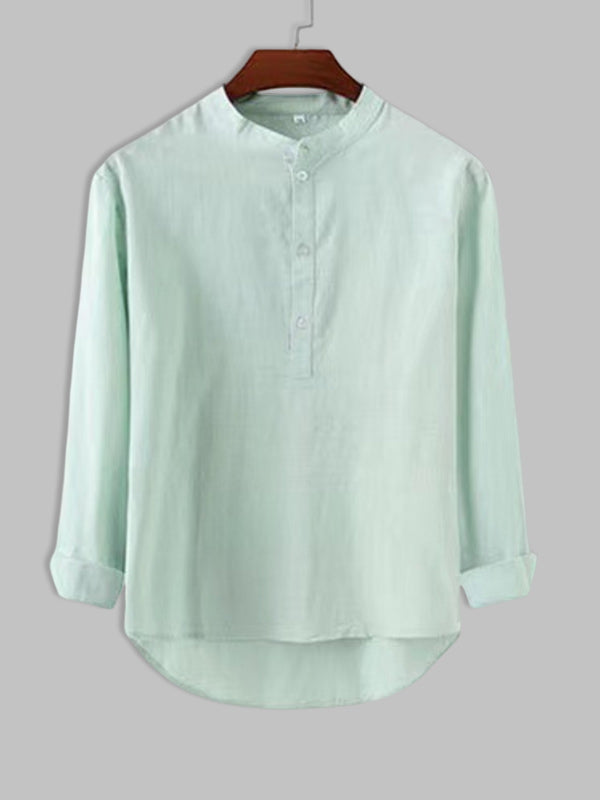 Men's Long-sleeve Half Placket Stand Collar Shirt