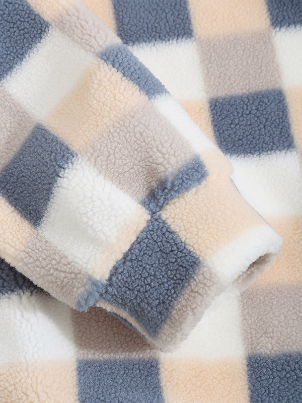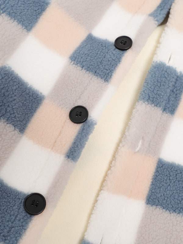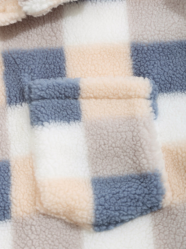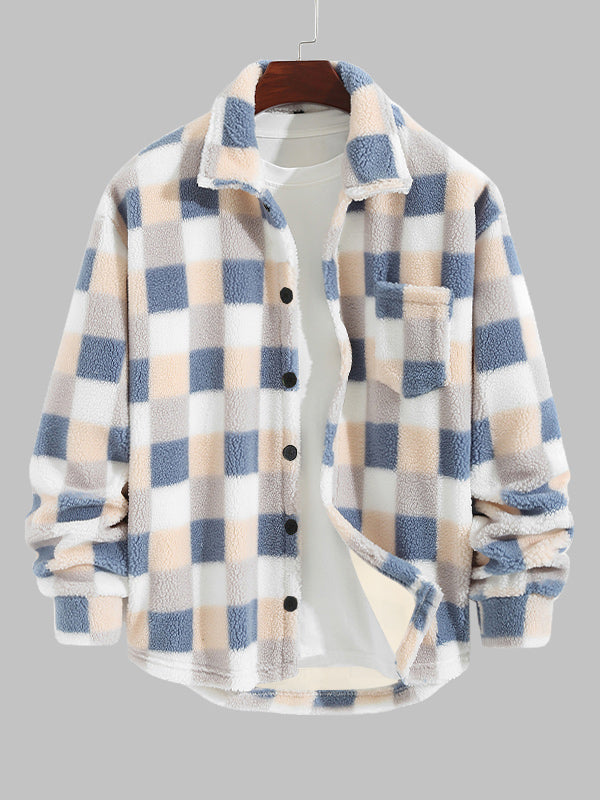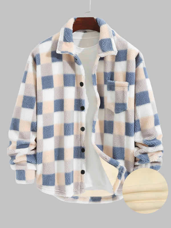 Men's Upgraded Plaid Plush Fleece Pocket Button-Down Lapel Jacket