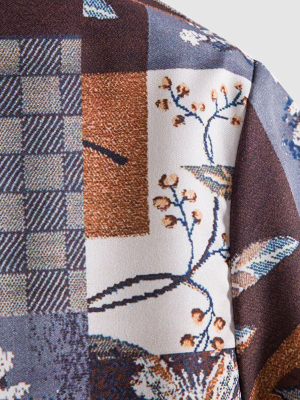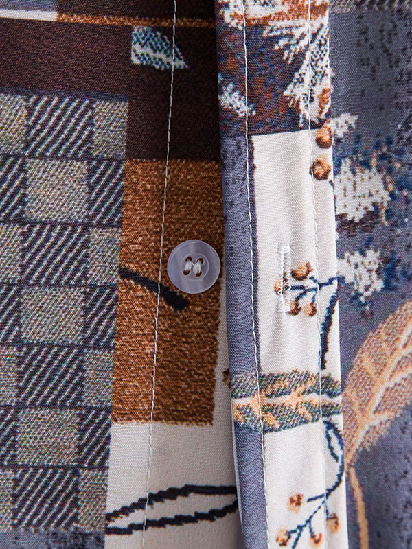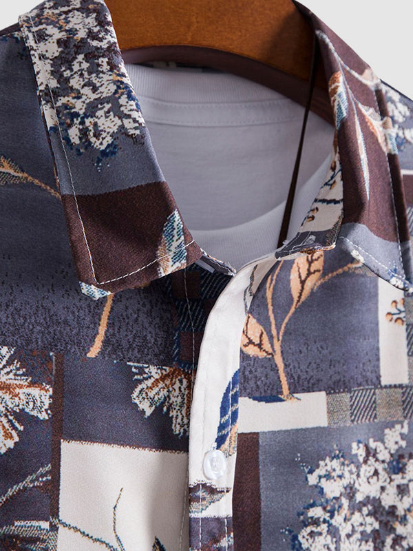 Men's Retro Maple Leaf Print Casual Short Sleeve Shirt