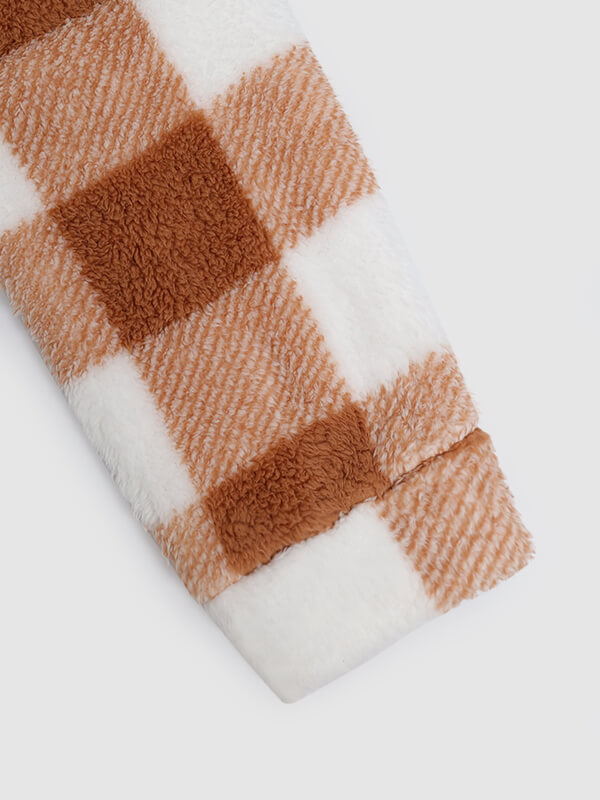 Men's Single Pocket Plaid Fleece Button Jacket