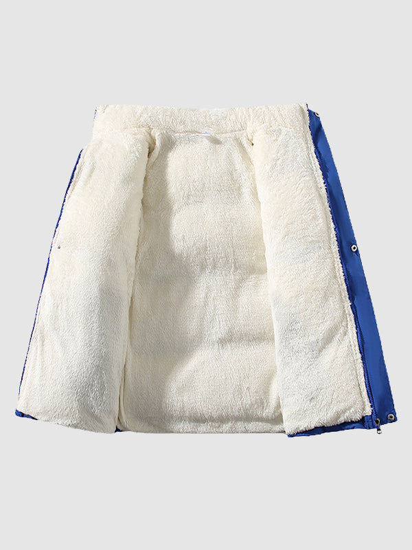 Men's solid color fleece-lined stand collar warm puffer jacket