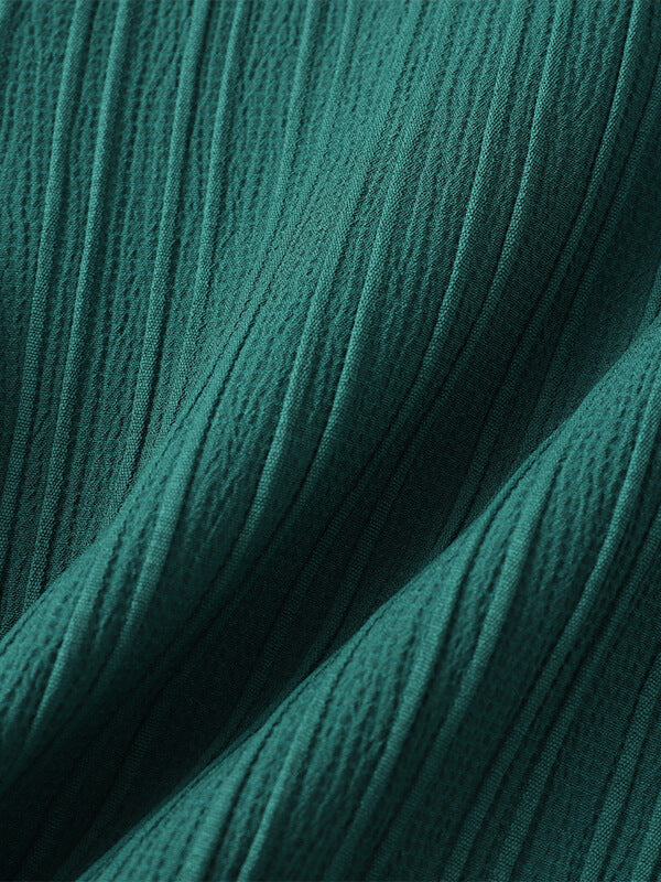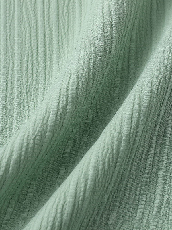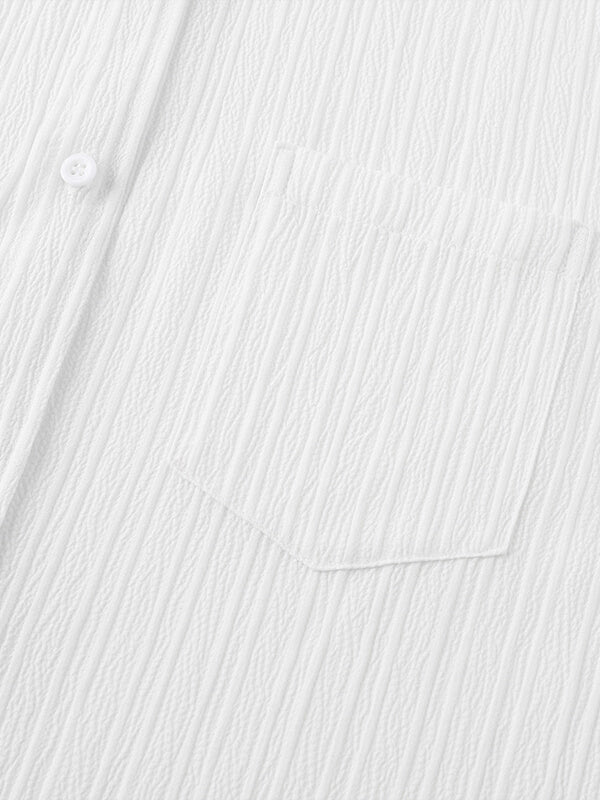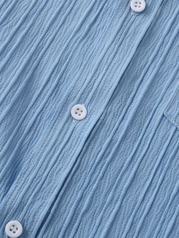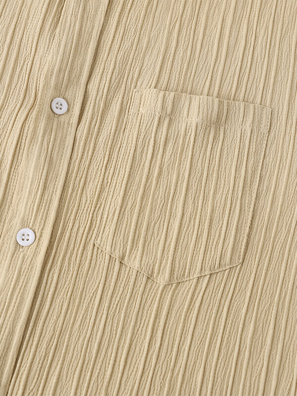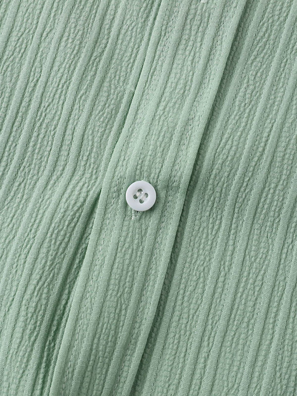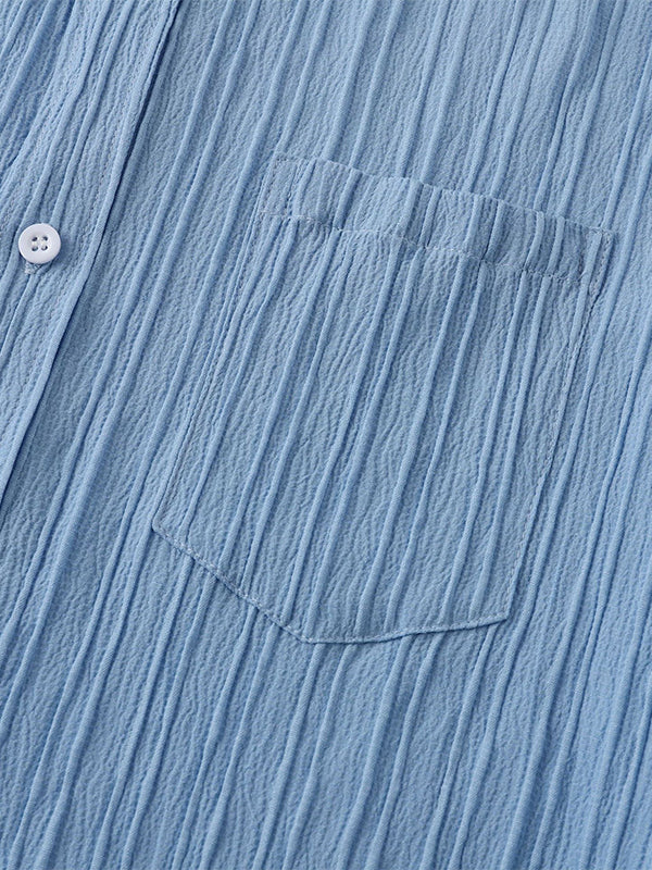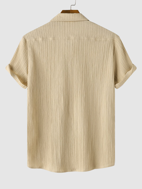 Men's solid color striped textured casual button-down Short Sleeve Shirt