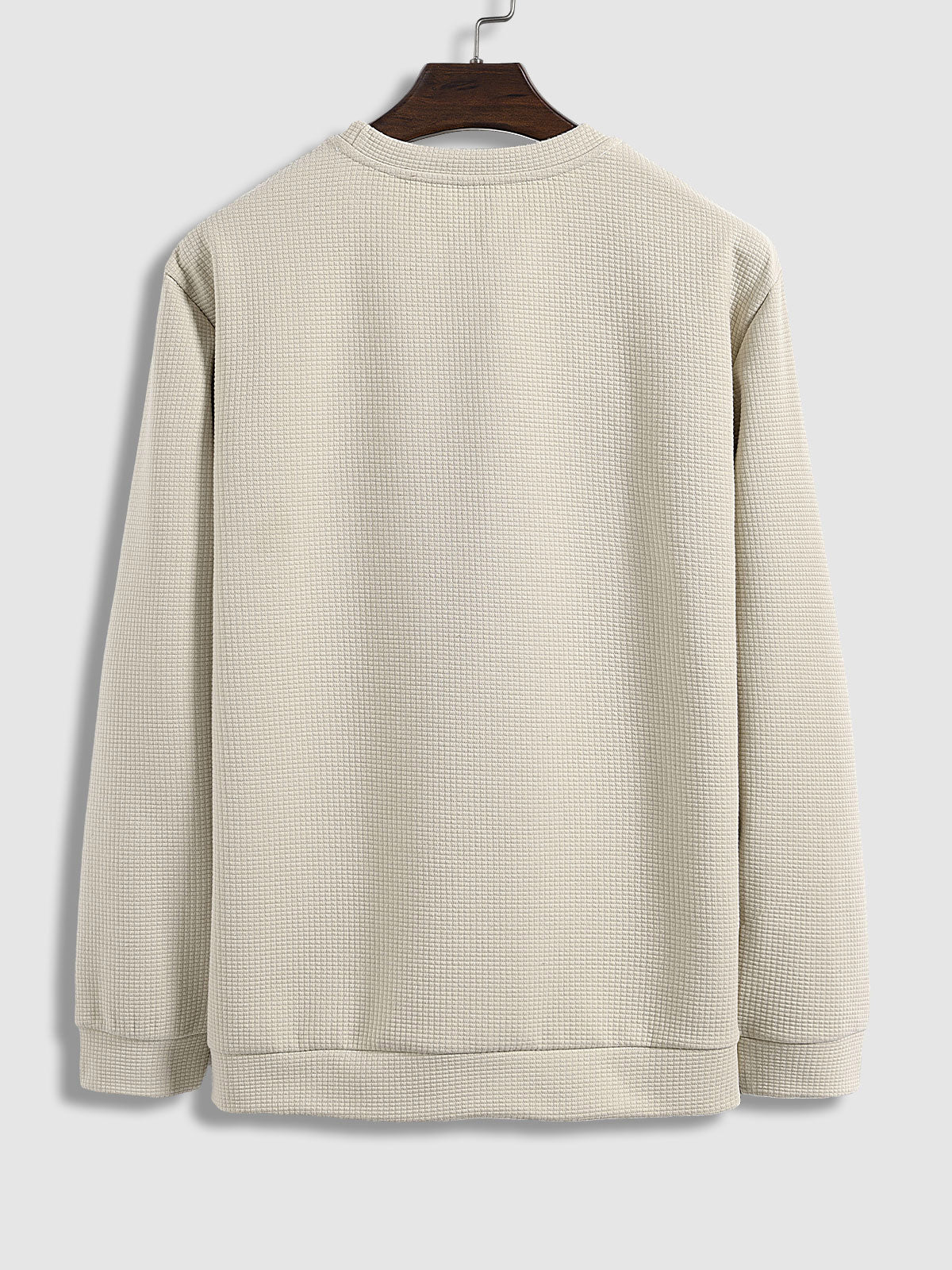 Men's Solid Color Textured Puff Grid Casual Crewneck Sweatshirt