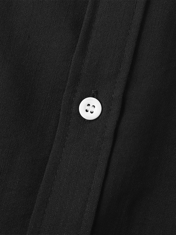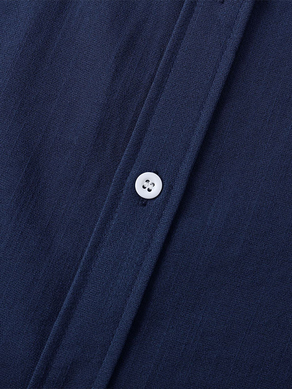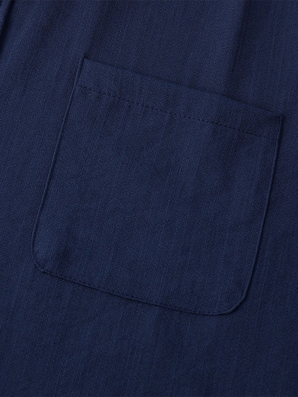 Men's Solid cotton casual lapel solid color short-sleeved shirt