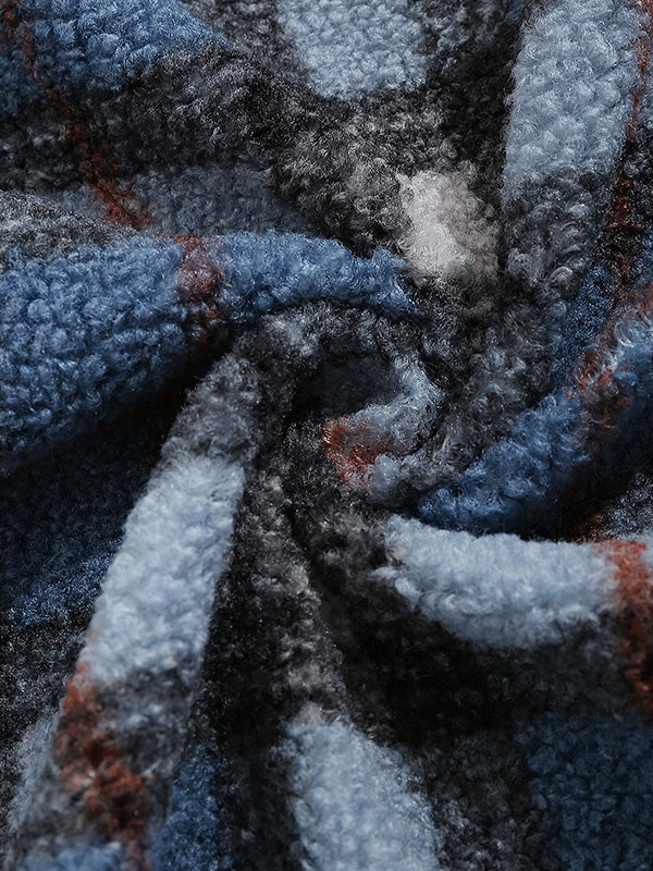 Men's vintage Polar Fleece plaid stand collar zipper sweatshirt jacket